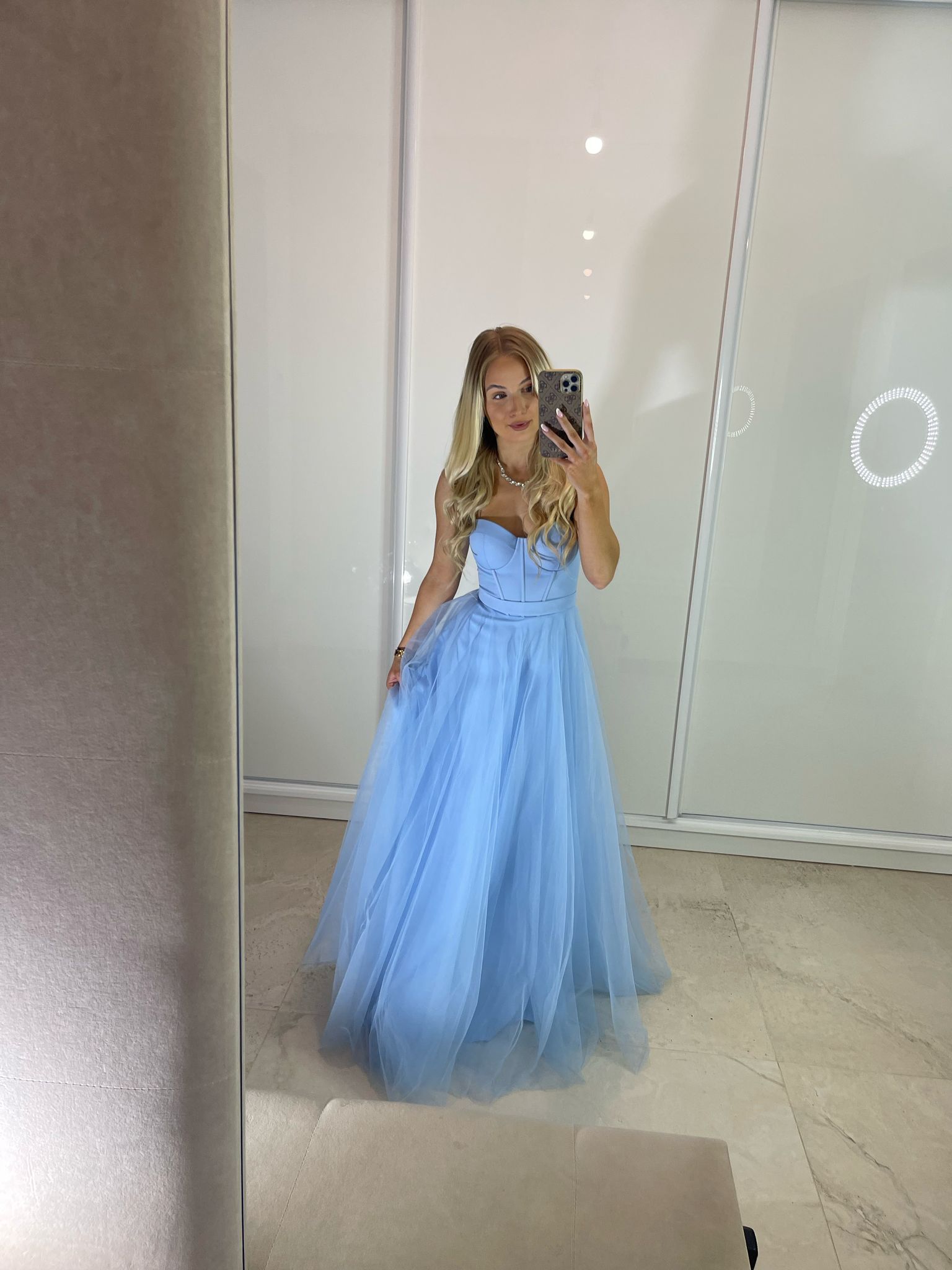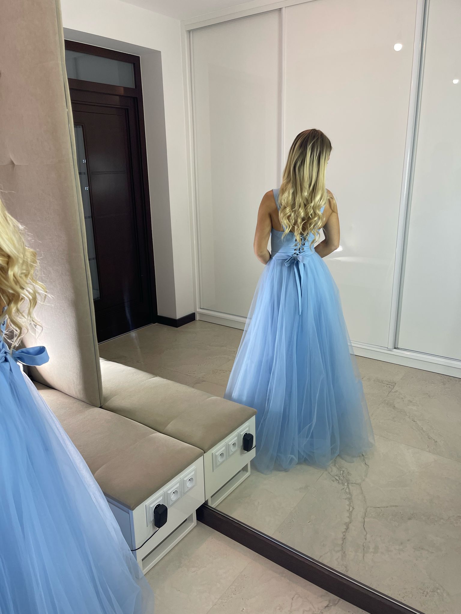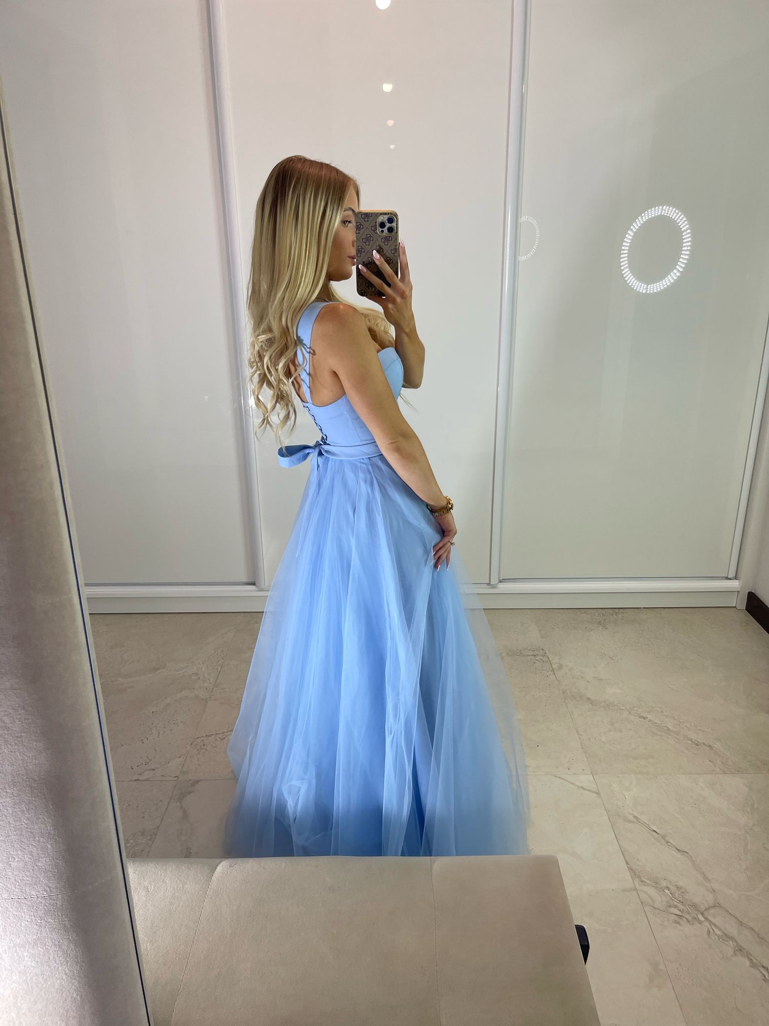 Sukienka maxi z gorsetową górą, dostępna w dwóch rozmiarach. Wiązanie z tyłu pozwala na idealne dopasowanie do sylwetki, a dodatkowy suwak ułatwia zakładanie. W zestawie stylowy pasek.