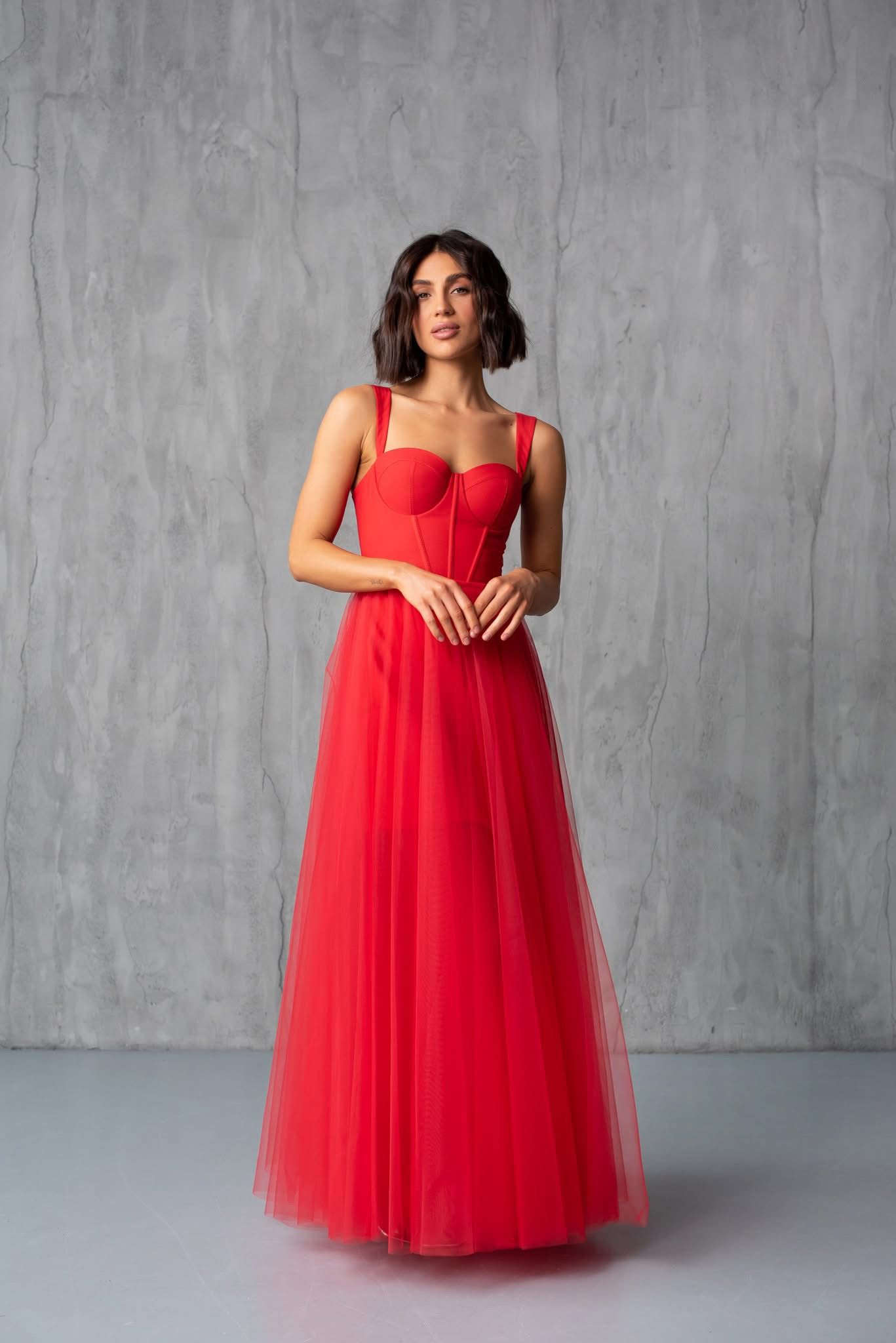 Sukienka maxi z gorsetową górą, dostępna w dwóch rozmiarach. Wiązanie z tyłu pozwala na idealne dopasowanie do sylwetki, a dodatkowy suwak ułatwia zakładanie. W zestawie stylowy pasek.